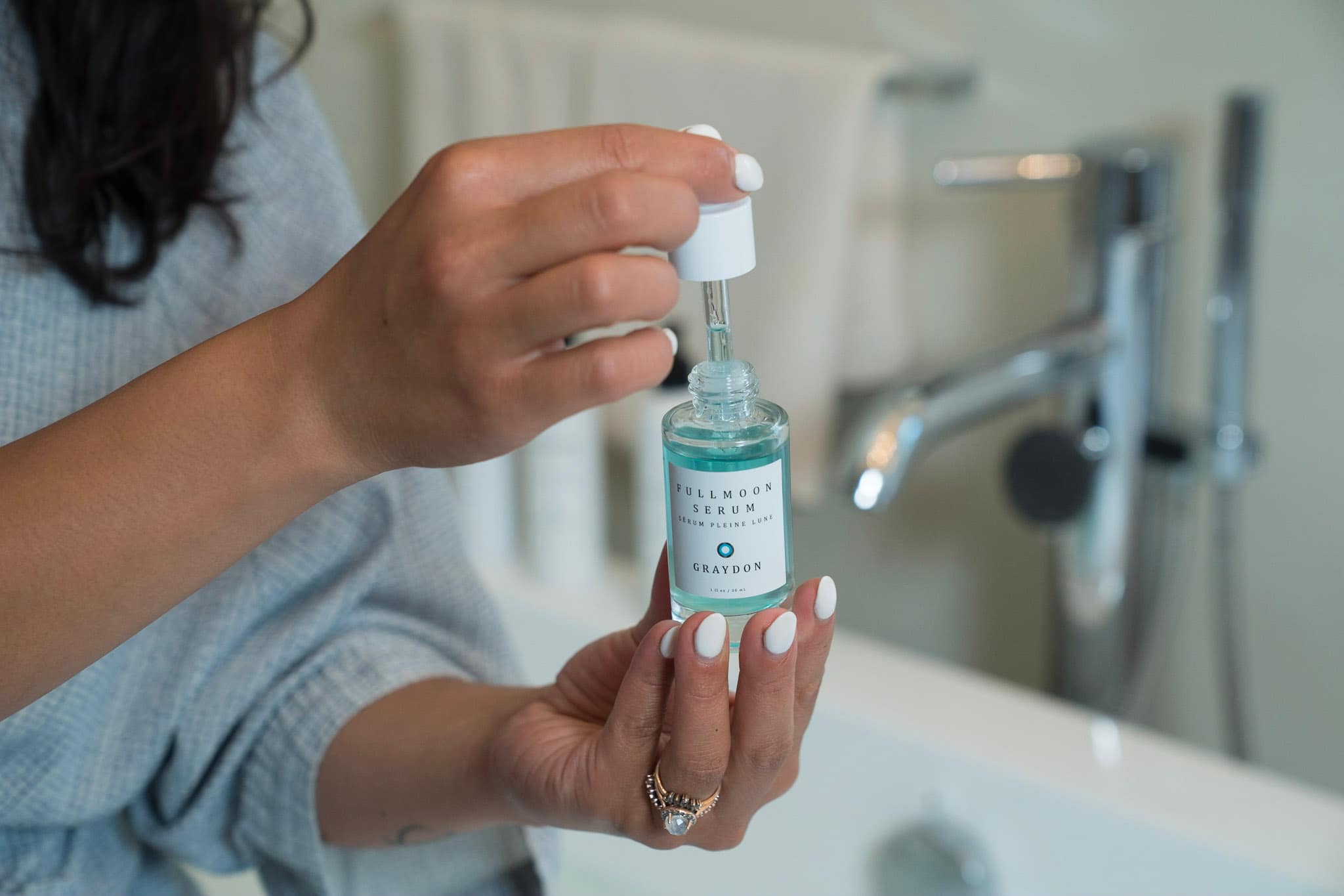 The Graydon Skincare product that you need to try right now is definitely Fullmoon Serum! It’s a lightweight, hydrating, water-based serum that’s formulated with a retinol alternative from moth bean extract. Moth beans are an edible, nutrient-dense legume. When applied topically, moth bean extract helps to speed cell renewal and boost collagen production, so it has the benefits of conventional retinol without the side effects.