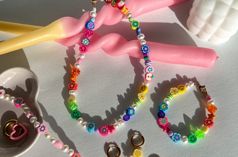 LORI uses classic items, like pearls, with colourful and playful beads, like smileys. This creates a very fun design. When founding the brand, it was important for me to have a brand that is for everyone, whoever you are and whatever your style is. I, therefore, created collections that are classy, playful, and a combination of both of them. For example, the Cali Necklace is a combination of 2 different pearl sizes and letter beads in the middle. The pearls are very classy and mature, the letter beads are inspired by the bracelet I got when I was born in the hospital. These beads are often used in birth bracelets in The Netherlands, to easily identify the children. I thought it would be fun to combine something so classy with something so fun. The letter beads are also a very important part of the brand, as every item can be customized with any text you’d like – so no names are excluded.