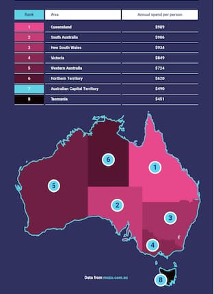 On average, Australian women shell out $3600 on beauty products. Yet, depending on where you come from, these figures change dramatically. The women from Queensland are the most extravagant, followed closely by South Australia. If you want to go somewhere where beauty is only a scribble at the bottom of the shopping list, then you need to live in Tasmania.