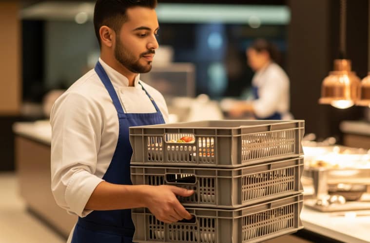 Maintaining hygiene is paramount. Plastic crates and professional storage boxes offer a significant advantage over disposable cardboard or flimsier alternatives because they are designed for industrial dishwashers and high-temperature sanitising. Their non-porous surfaces won’t absorb spills or harbour bacteria, unlike cardboard or wood. This makes them exceptionally easy to clean and keep sanitary, supporting strict HACCP protocols and health code compliance. A fleet of identical, cleanable containers presents a professional image that clients and health inspectors will notice and appreciate.