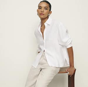 Among the first pieces available on the ShopMy page is a true Markle favorite: the Andy Oversized Linen Shirt by Reformation, priced at $188.