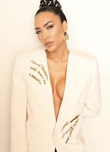 Tiesi’s bold cream blazer is a chic workwear must-have that features an edgy, gold design. Tiesi is known for her blazer ensembles on the show, which are reminiscent of her boss-babe persona. As a result, Tiesi embodies a strong sense of individuality and style through her looks, in which she thoughtfully blends ambition with authenticity.
