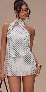 SHEIN BAE Women’s Vacational Polka Dot Printed Fashion Halter Mini Dress