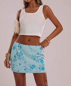 SHEIN BAE Summer Women’s Beach Vacation Bohemian Blue Pattern Sequin Short Skirt