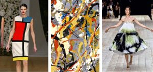 In contrast, Jackson Pollock approached art through movement and instinct, layering paint in a way that felt expressive and unrestrained. That same energy has appeared on the runway, most notably in Alexander McQueen’s spray-painted dress, where the process of creation became part of the final look.
