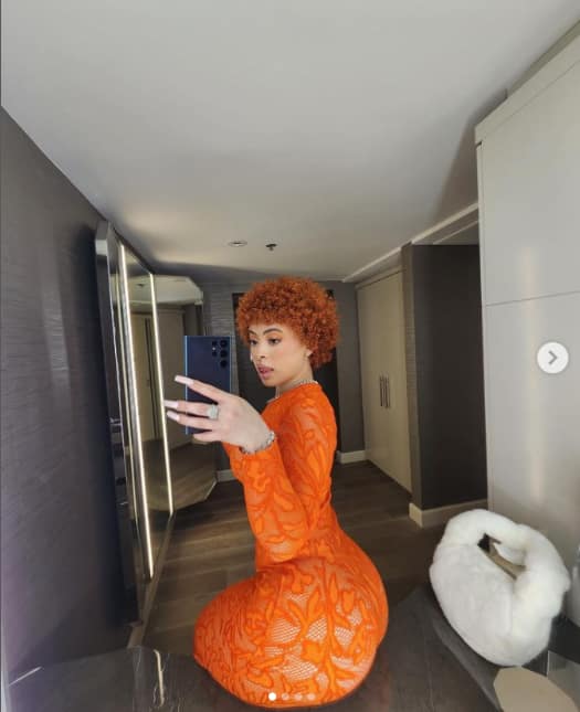 Ice Spice is always pushing the boundaries when it comes to fashion and her recent outfit is no exception. She was spotted wearing a full neon orange lace and fish net floral dress that went all the way down to her ankles