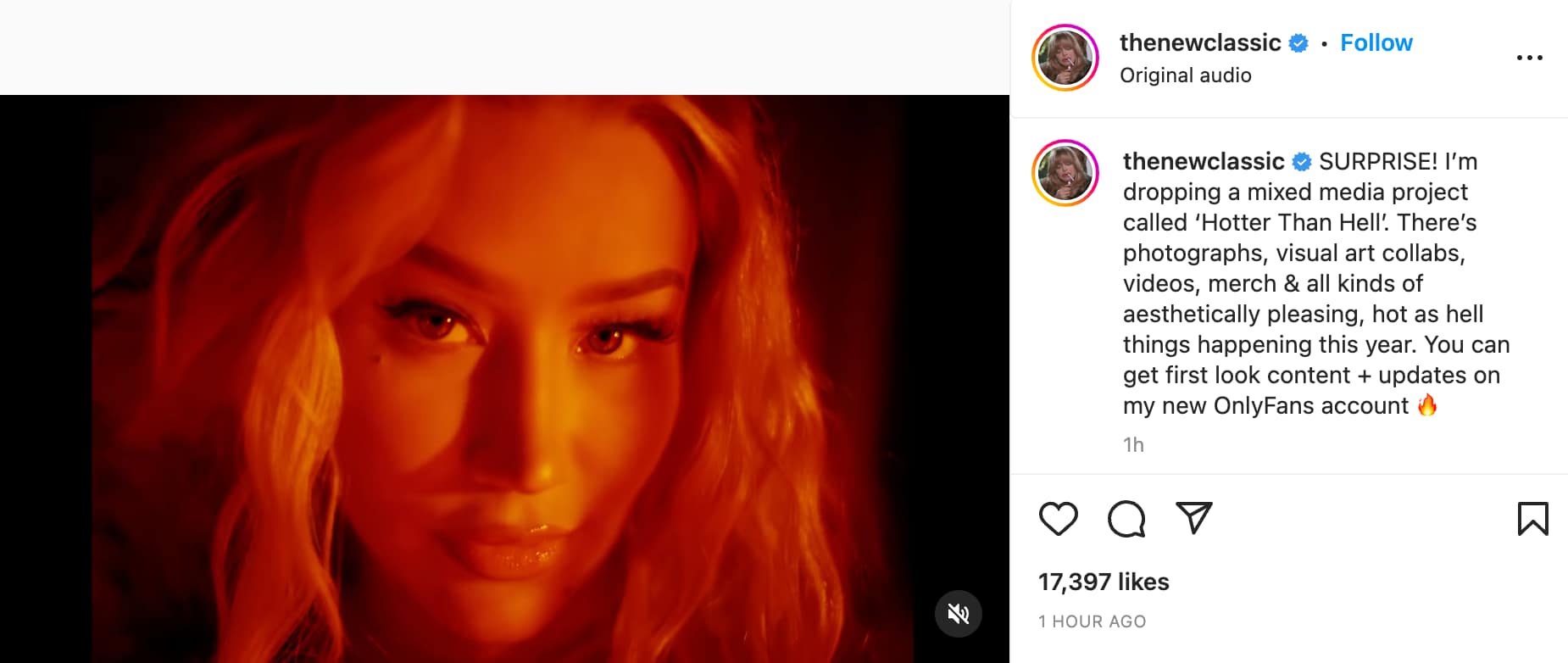 “Admittedly, I never knew OnlyFans was a place where I could be creative, so I didn’t expect to be collaborating with them on my biggest project to date.” Iggy says, “Once I looked beyond the surface level chatter about what it means to have an OnlyFans, I realized it was the perfect platform to launch a multimedia concept on,” she said. “I feel excited about not having to worry about the overwhelming and creatively limiting censorship artists have to navigate when sharing work on other digital platforms.”