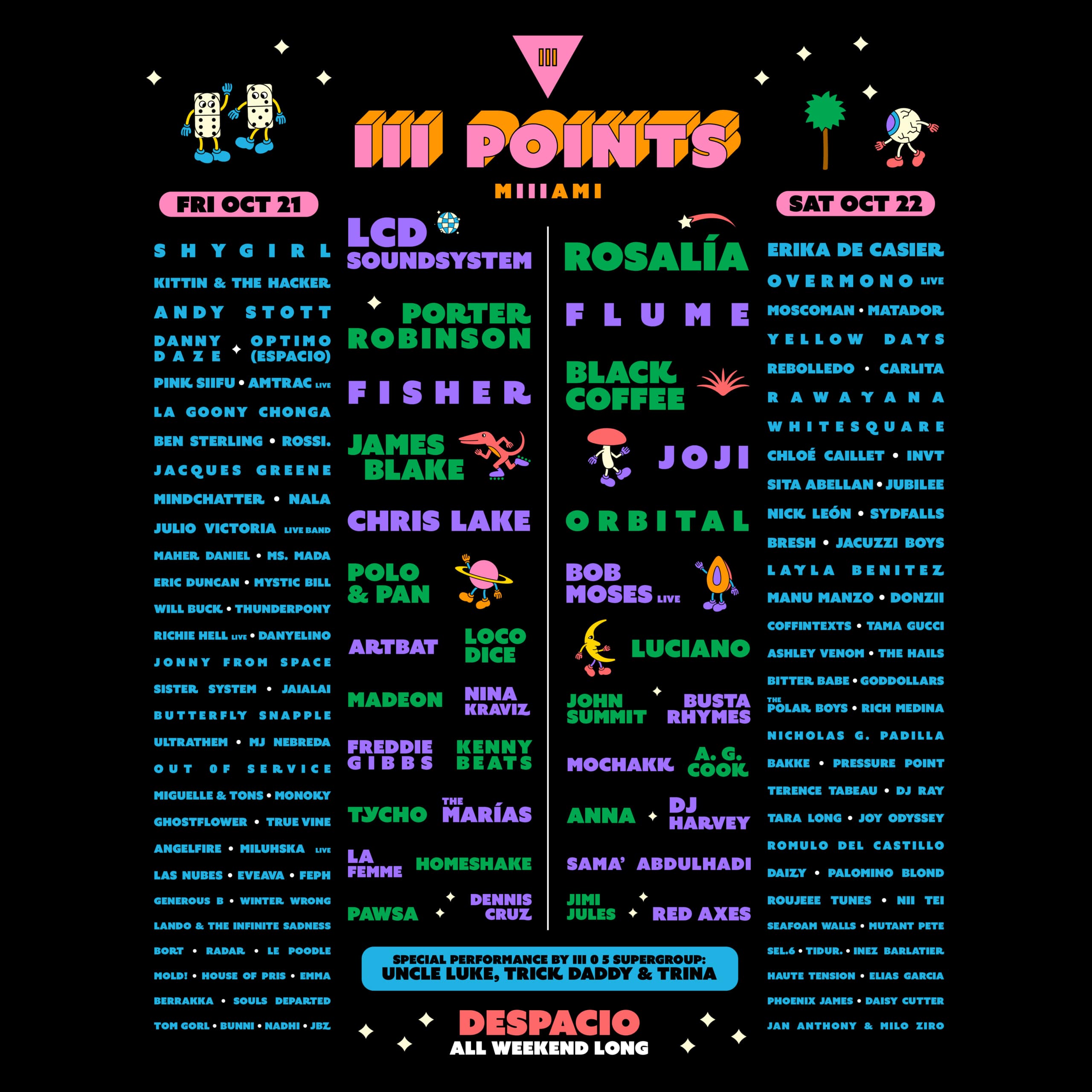 However, Miami’s people have a wide range of musical preferences, thus III Points is also bringing in significant hip-hop artists like Busta Rhymes and pop stars like the rising Rosalía who will pay homage to the city’s Latin roots. The event will also include a full weekend of Despacio, a sound system and music listening experience built in collaboration with LCD Soundsystem singer James Murphy that has previously played at Coachella and Sonar. Throughout the weekend, pre-, after-, and closing parties will be held in all three rooms of Miami’s renowned Club Space — Club Space, The Ground, and Floyd.