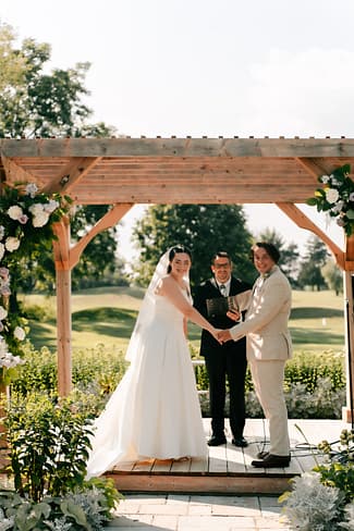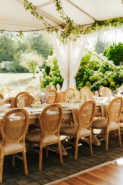 Held in Hamilton, the wedding blended sentimental details with understated luxury. TJ wore her mother’s wedding dress, creating an heirloom moment that made the day even more meaningful. Their florist, Kate from Gather in Hamilton, crafted whimsical arrangements featuring Ulster Merriam, her late grandmother’s favorite flower.