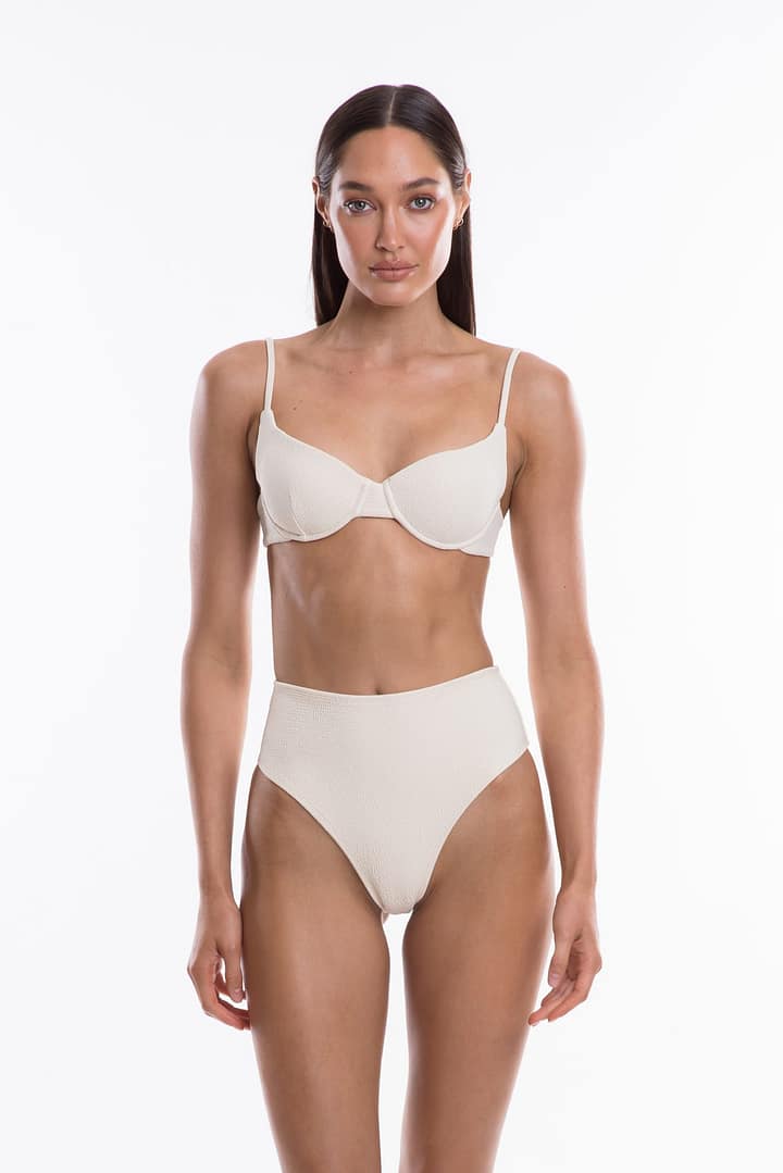 This classic string bikini is perfect for lounging around at the beach or pool! Designed in the brand’s ultra-luxe crinkle fabric, the SUKI TOP features the perfect triangle shape. As a result, be sure to pair it with the matching SUKI Bottoms for the ideal monochromatic look. This is because they are flirty and feminine by design, and they also include a flattering cut.