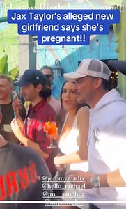 The TikToker includes this viral video clip in the TikTok post, in which Taylor can be seen with his arms seemingly around Woolen. Woolen, who is holding a drink with one hand in which her other hand is seen close to her stomach, can be heard saying, “I’m pregnant” before the camera cuts away and the clip cuts out.