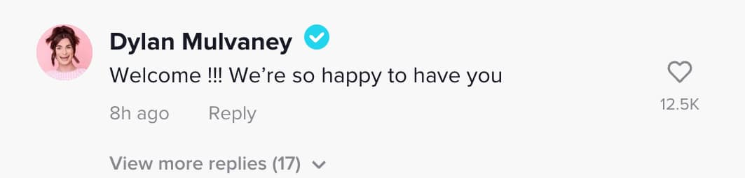 TikTok Star, Dylan Mulvaney headed to the comments to write,