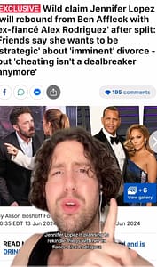 June 19, 2024– According to this TikTok video posted by user @yourbestfriendjoshua, The Daily Mail is alleging that Lopez could rekindle her past romance with Rodriguez amidst rumors of trouble in paradise with her current husband, Ben Affleck.