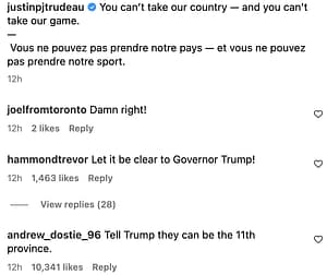 Others took to Instagram to share their thoughts following Canad’as win and Trudeau’s remarks: