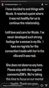 During the Love Island USA Reunion special, Nicole claimed that Kendall lied to her about the video’s origins- alleging it was sent to someone he reportedly “trusted, an ex-girlfriend” only to find out that the clip was allegedly recorded in the hotel room right before Kendall got into the villa to someone he met on a dating app.