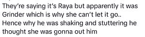Raya is a dating app so Nicole could be alluding to the fact that she doesn’t think Kendall was being truthful about being on Raya although this cannot be confirmed. There are rumors swirling that Kendall might’ve been using another dating app- Grindr (an app for the LGBTQ community)- but this remains unconfirmed and is just a rumor.