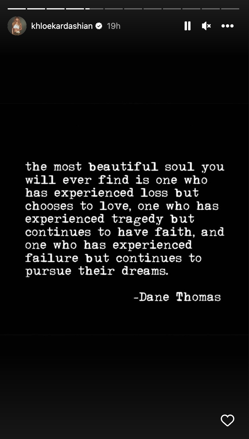 Khloe has sent out many different quotes to her Instagram story, all of which relate to a woman finding love after hardship.