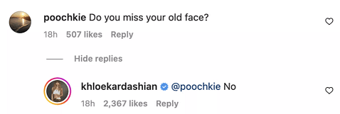 One Instagram user asked the reality star if she misses her ‘old face’, to which she simply responded ‘no’.