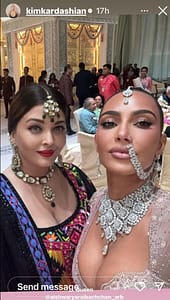 Kim took a photo with former Miss World 1994, and Bollywood actress, Aishwarya Rai Bachchan and posted it to her Instagram story.
