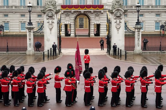 10.20 a.m. ”Their Majesties’ Carriage Procession”; King Charles and Queen Camilla leave Buckingham Palace.