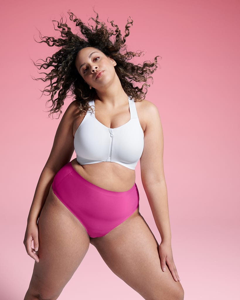 The Knix Catalyst and Catalyst Front Zip are the best high impact sports bras on the market. Available in sizes 32A to 42G, Knix carries leakproof underwear – perfect for keeping sweat and leaks under control during your workout should you be interested. Also, if you need help to find your size, you can book a virtual bra fitting on their website.