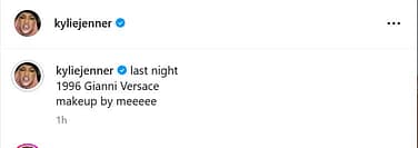 Kylie shares new photos in a sleek black gown, captioning the look “last night — 1996 Gianni Versace — makeup by meeeee”
