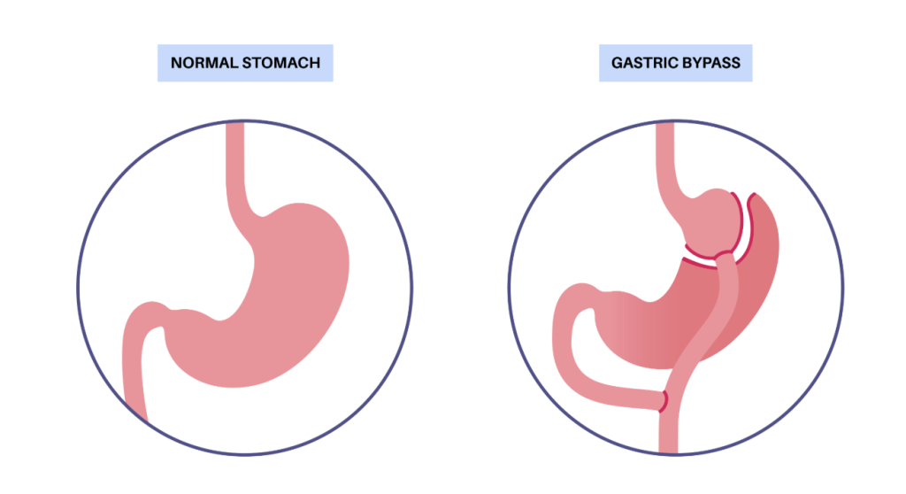 - Gastric bypass: It creates a smaller stomach pouch and reroutes part of the intestine, promoting stronger weight loss and improving health conditions like diabetes.
