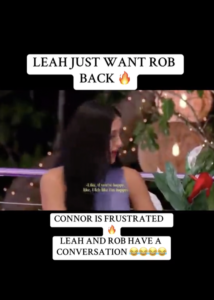 According to this TikTok video posted by user @kafuiofficial, Leah and Rob had a conversation together following Andrea leaving the villa. Leah and Rob were initially coupled up before Rob’s attention shifted to Andrea. Rob was visibly upset when the girls voted Andrea out of the villa, threatening self-elimination before deciding to stay and see how things go.