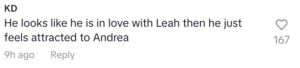 As well, others think that this interaction means something in that Rob looks “in love with Leah” and was only “attracted” to Andrea. Again- this is alleged.