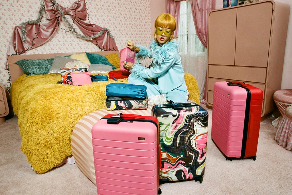 Adding a fun pop of colour to your travel bags with Away’s F.A.R. collection featuring bright colourblocked fabric.