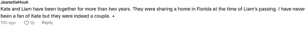 “As someone who went to college with Kate, she is a genuinely sweet girl and was always so nice whenever I talked to her. Fame didn’t change her, she loved Liam more than anything. Loving someone battling addiction is one of the hardest things to deal with other than what she is going through right now. Spread kindness, spread generosity as karma is real. The real ones love you Kate. Keep being you.”