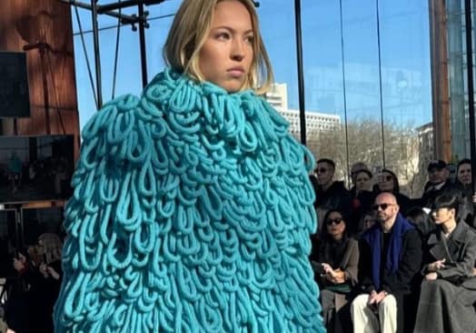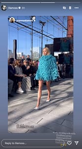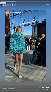 Clad in a bold and unconventional blue knitted outfit, Lila captivated onlookers with her leggy display and confident stride. Paired with sleek hair and minimal makeup, her look exuded a sense of modern elegance that perfectly complemented Stella McCartney’s signature aesthetic.