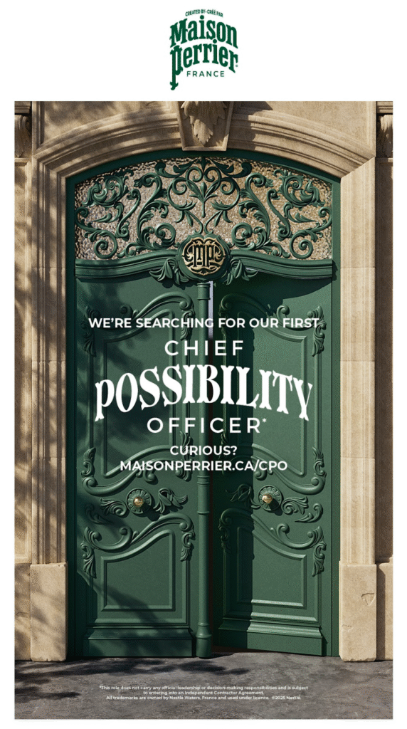 This CPO role is about leaning into life, sharing unforgettable experiences, and showing Canadians how to find joy and adventure in the everyday. Now, Maison Perrier is inviting one daring individual to become a living symbol of what’s possible when you say yes to the unexpected.
