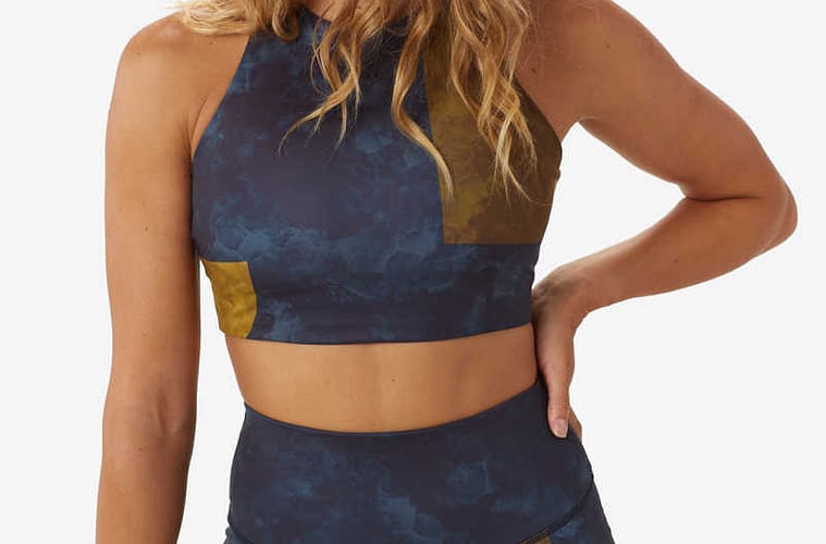The burst-up bra gives you medium support, the high neck and cross back are both great for support while working out, but also add a little bit of funky fun to your clothes. As a matching set, the burst ankle legging is just as stylish with the pattern to match and gives you total support as it’s high-waisted, and has no side seam to interrupt the pattern. The leggings also have a hidden pocket in the front waistband for small items or your phone.
