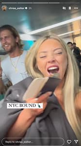 Liv took to social media to share that she and Harrison were traveling to NYC together in some fun story footage of the duo getting on the plane and dancing.