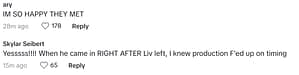 Others thought that production “F’ed” up on the timing when Harrison came into the villa after Liv left as they thought that they would’ve had fun together.