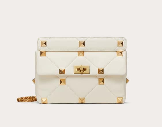 The Valentino Garavani Roman Stud, is the most recent interpretation of the Rockstud family.  This is a tribute to the bugnato which characterizes the Roman Palazzos. The Fall/Winter 2021-22 collection continues to effortlessly capture the essence of punk and Roman architecture into a well-structured bag. This must have style has been seen on the likes of Angelina Jolie, Lady Gaga and Vanessa Hudgens. It is a captivating addition to any wardrobe that marries the world of a classic look with the future so that it instantly becomes a timeless piece.