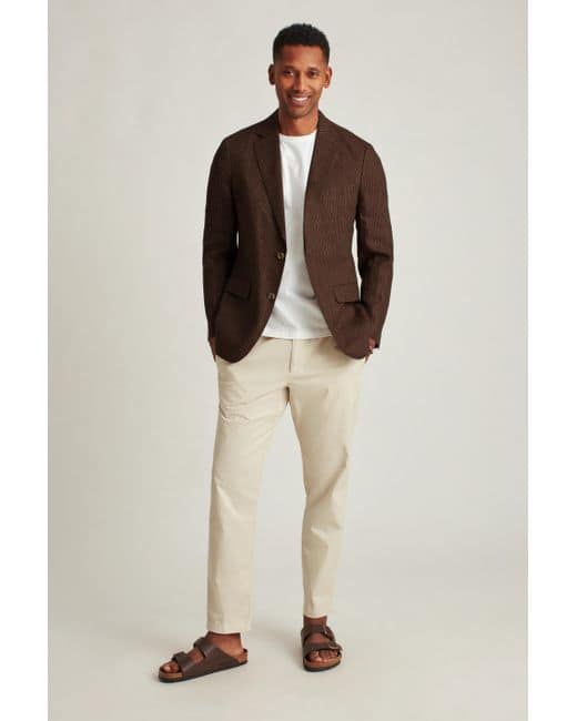 This linen blazer is all about versatility. You can order it in three different fits, and it comes in a range of patterns of herringbone, windowpane, plaid, and stripes are all on offer. Grab them all and you’ll have a jacket for every day of the week.