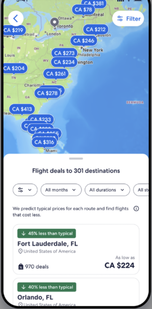 If you’re after some major savings this year (I know we are!), international flights under $400 include Kitchener → Fort Lauderdale, Saskatoon → Minneapolis, and St. John’s → Tampa.