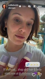 April 14, 2026 — Millie Bobby Brown is celebrating a major milestone for her beauty brand, Florence by Mills. In a new update shared with fans, she revealed that all three of the brand’s hair and body mists are now officially available at Ulta Beauty.