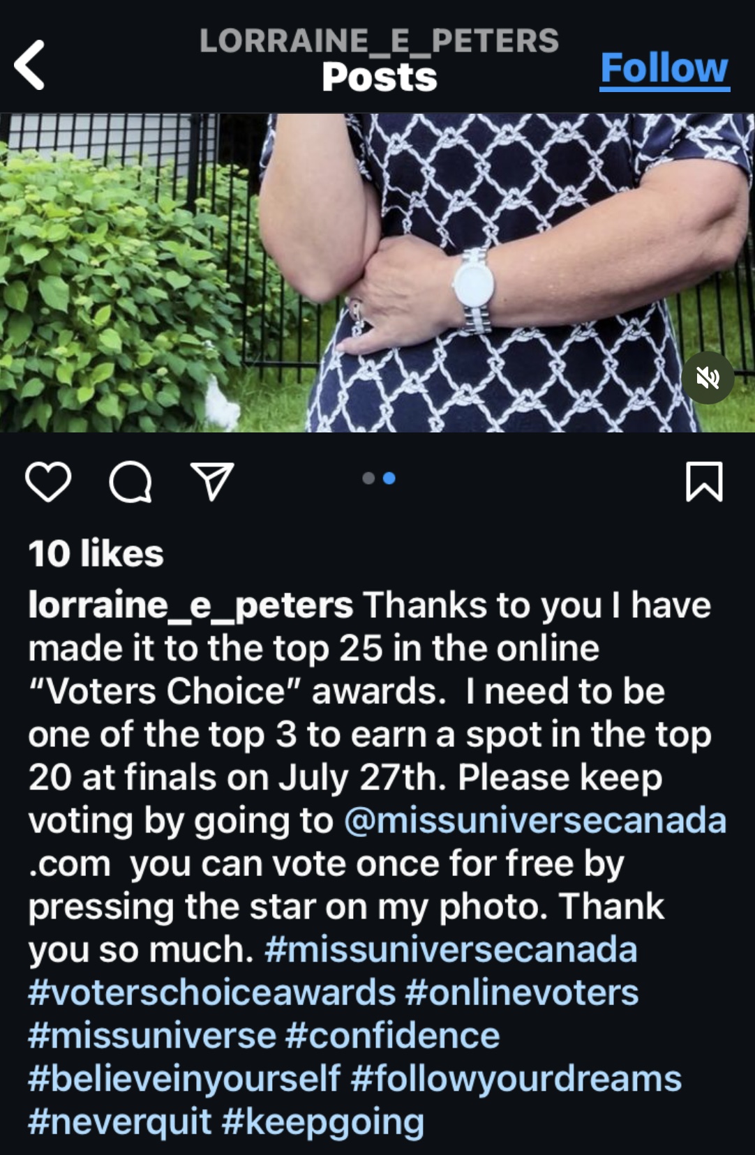 Peters was chosen from Rothesay, New Brunswick where she lives. She runs a modeling agency and a personal development firm.