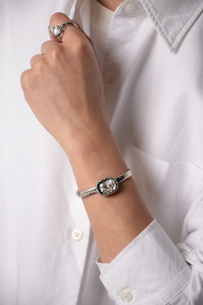 One of our favourite new El&Elle designs to date is the Time Moissanite Bangle, which is a standout piece that came from a simple observation. As the founders explain, “We no longer rely on our wrists to tell time in the way we once did.” With that, the Time Moissanite Bangle explores how the role of wristwear has quietly shifted–from something functional to something expressive. “Instead of creating another timekeeping object, we removed the function entirely and focused on what remains: presence, proportion, and how a piece feels on the body,” says the two.