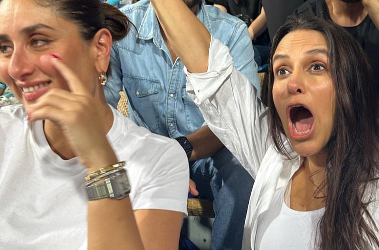 Neha Dhupia made waves on the internet when she shared a series of “highlights” from her time at the Indian Premier League match between Chennai Super Kings and Mumbai Indians at the Wankhede Stadium. What caught everyone’s attention was her company, as Neha was joined not only by her husband Angad Bedi but also by her former co-stars from “Garam Masala” (2005) and “Chup Chup Ke” (2006), John Abraham and Kareena Kapoor.