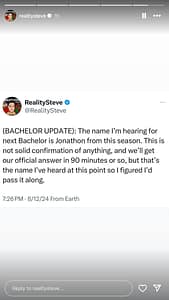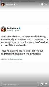 Reality Steve took to social media earlier today to claim that the new Bachelor was going to be announced in a series of posts on Instagram: