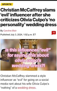 July 4, 2024– According to this TikTok video posted by user @georgiejxmes, Olivia Culpo, and her husband are firing back at a content creator who openly stated that she wasn’t a fan of the meaning behind Culpo’s wedding dress.