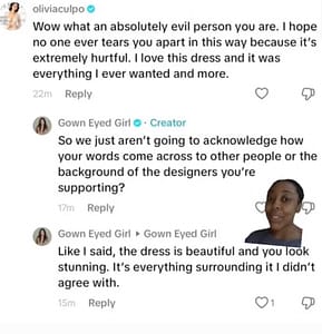 Olivia Culpo is in hot water after it was revealed she commented on a creator’s post who did not like her wedding dress.