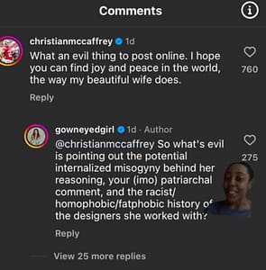 The creator thought it was strange that Culpo went for a modest design when she does not dress modestly on a day-to-day basis. Others in the comment pointed out how Culpo’s afterparty look was also drastically different in comparison to her ceremony look.