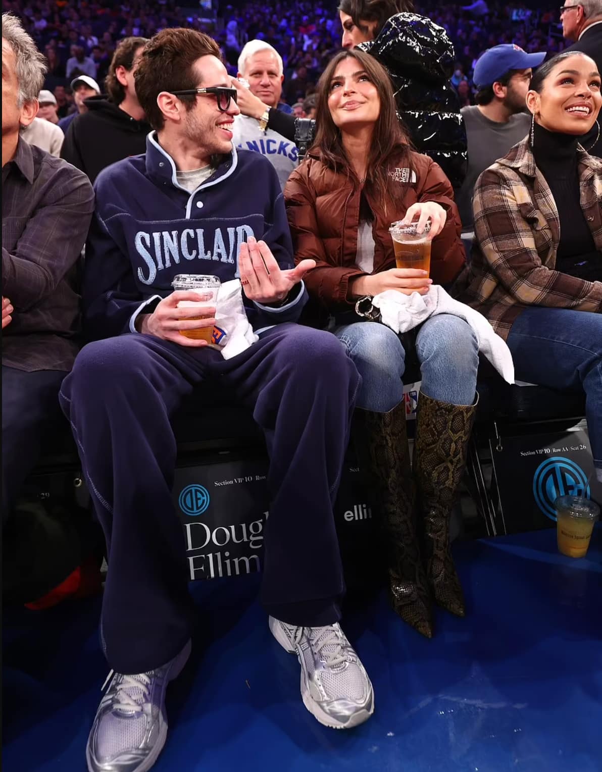 On Sunday, Pete Davidson and Emily Ratajkowski made their public debut as a couple at a basketball game at New York City’s Madison Square Garden. The hot new couple was spotted courtside at a Memphis Grizzlies vs. New York Knicks game. Both Davidson and Ratajkowski were beaming as they sat courtside with beers in hand for the game.