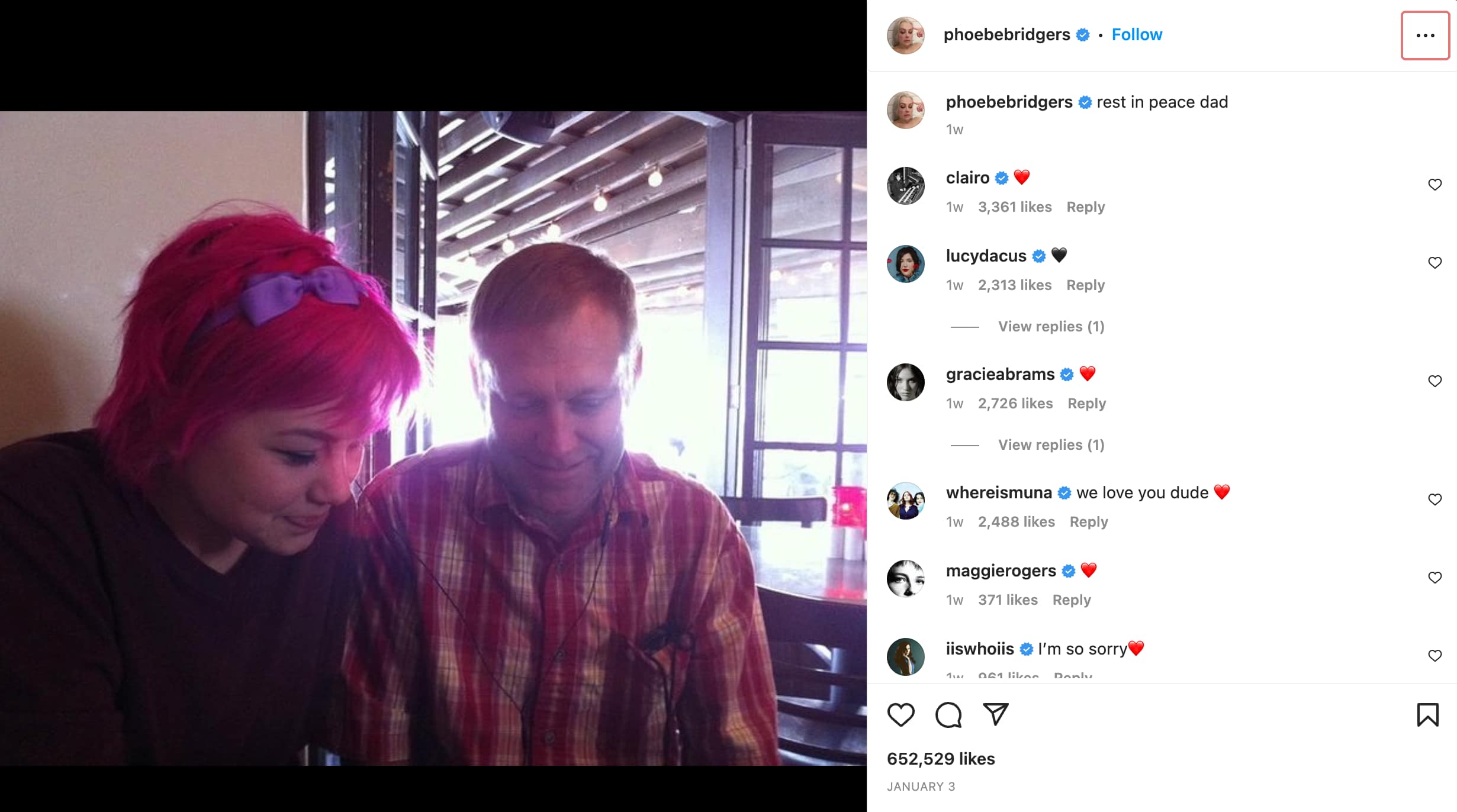 On January 13th, Bridgers shared a post of a picture of her and her father with the caption,