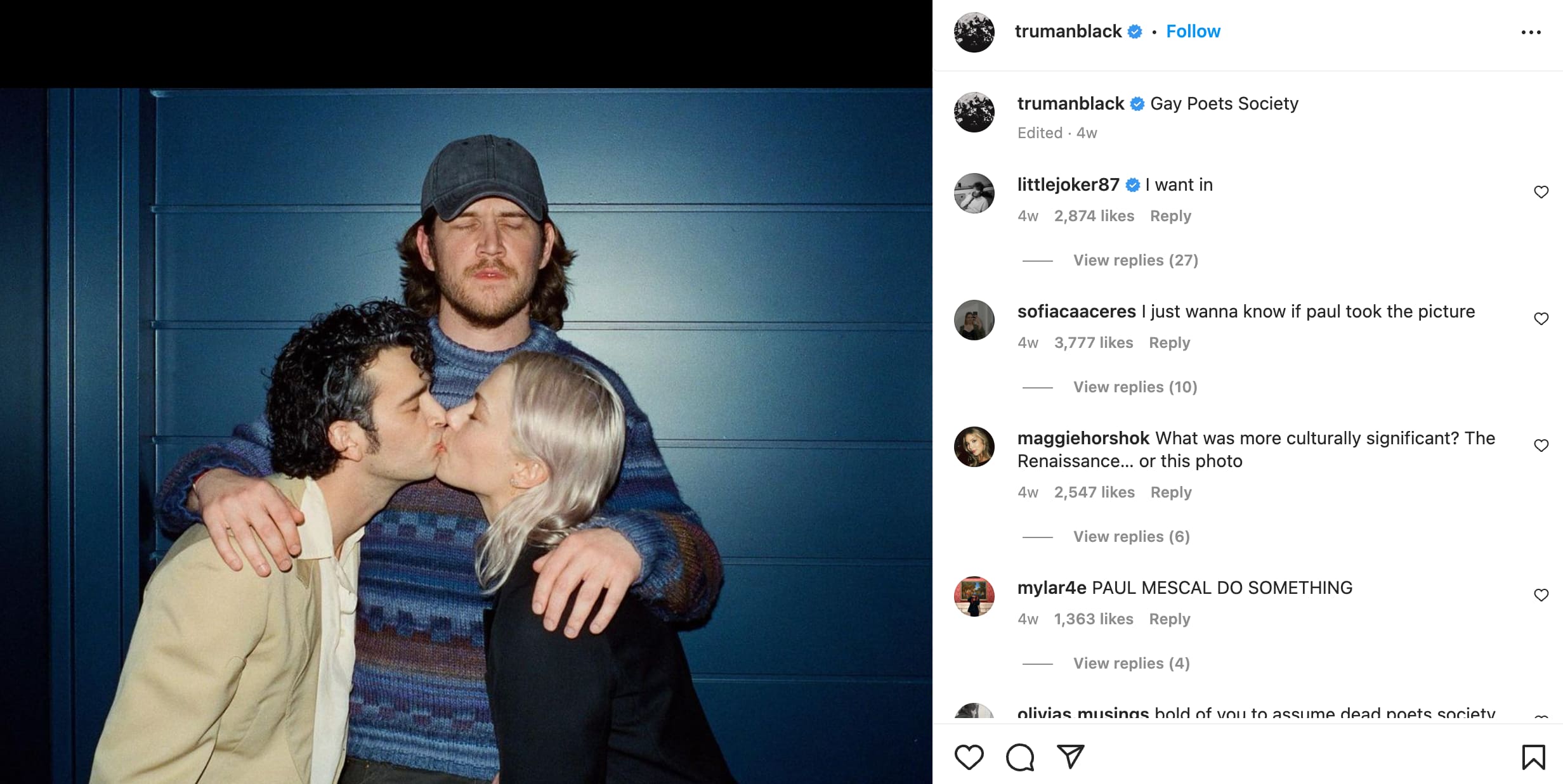 Lead singer of The 1975, Matty Healy, shared a photo on Instagram of Phoebe and Matty kissing with Bo in the background making a face. This post had fans scratching their heads, some started firing some dating rumours between Matty and Phoebe, and some questioned all rumours altogether.